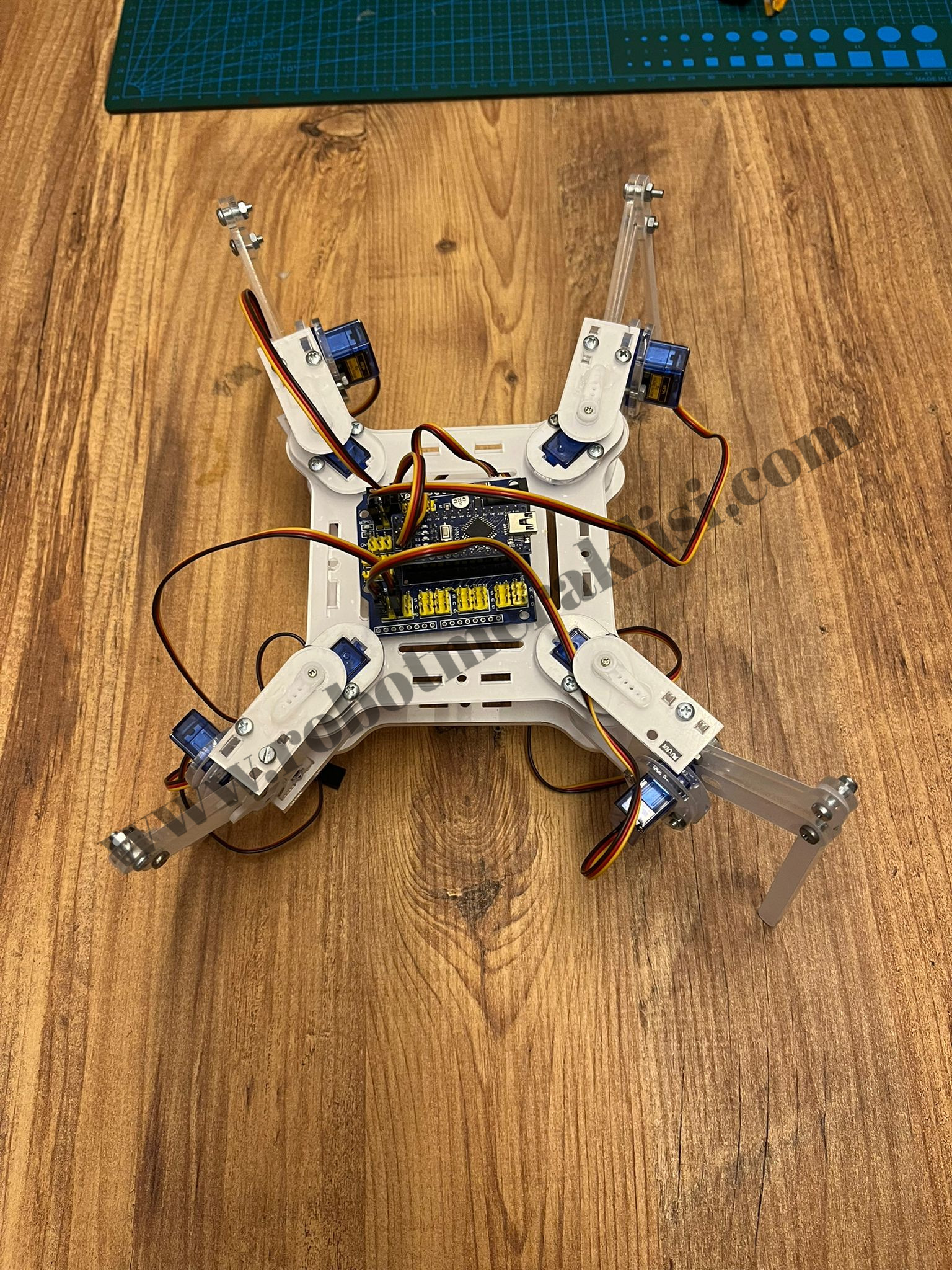 Örümcek Robot Kiti; çok bacaklı robot hareketlerini öğretmek, servo senkronizasyonunu kavratmak ve ileri seviye robotik projeler geliştirmek isteyenler için hazırlanmış tam donanımlı bir eğitim setidir. Gerçekçi yürüme algoritmaları ile dikkat çeker.